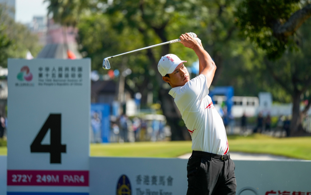 年僅22歲的業餘球手Jeffrey Shen(沈弘毅)今日表現亮眼,全場抓下5隻小鳥,更在第13號洞射下老鷹,最終交出低於標準桿6桿的64桿佳績。雖然在最後一洞吞下柏忌,但無損其卓越表現。賽後Jeffrey難掩興奮:「這是我首次參加全運會,雖然心情緊張,但近期狀態正盛,今天只想專注打好每一桿,用低桿數幫助團隊爭取佳績。能夠打出64桿,我深感滿意!」