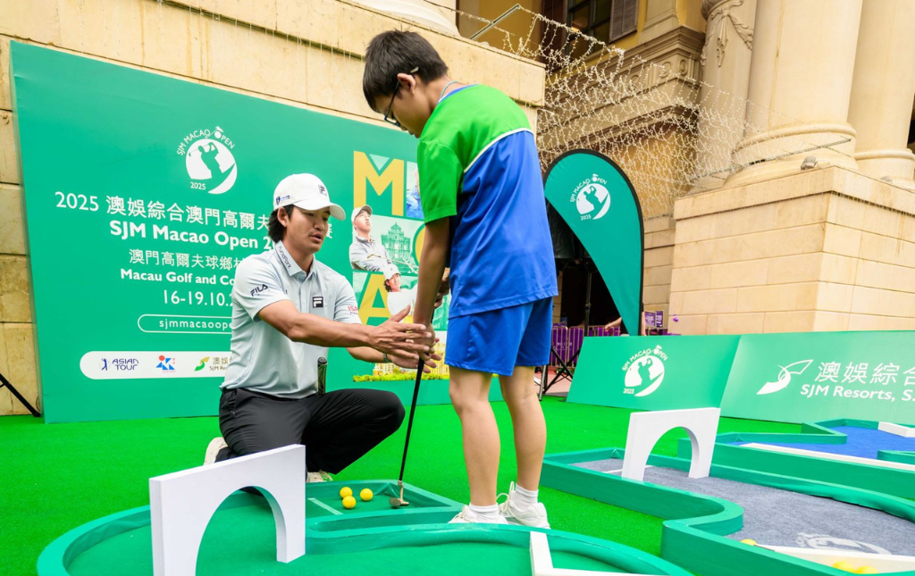 在「2025澳娛綜合澳門高爾夫球公開賽」即將開幕之際,賽事冠名贊助及合辦單位澳娛綜合度假股份有限公司(澳娛綜合)於10月12日在澳門十六浦度假村戶外廣場舉辦「社區高爾夫球同樂日」,成功以輕鬆有趣的方式將高爾夫球帶入社區。活動特別邀得香港星級球手Taichi Kho(許龍一)親臨,與澳門本地球手Kelvin Si(史毅)一同指導年輕愛好者,現場氣氛熱烈。